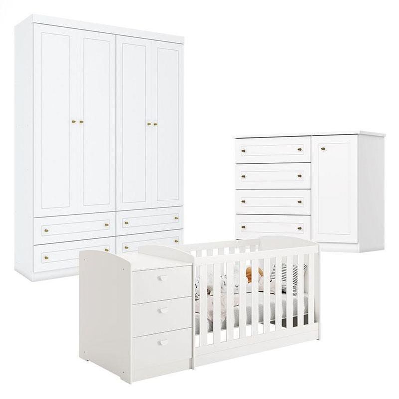 Quarto Infantil 4 Portas Mississipi E Berço Multifuncional Atlanta Branco Fosco - Reller