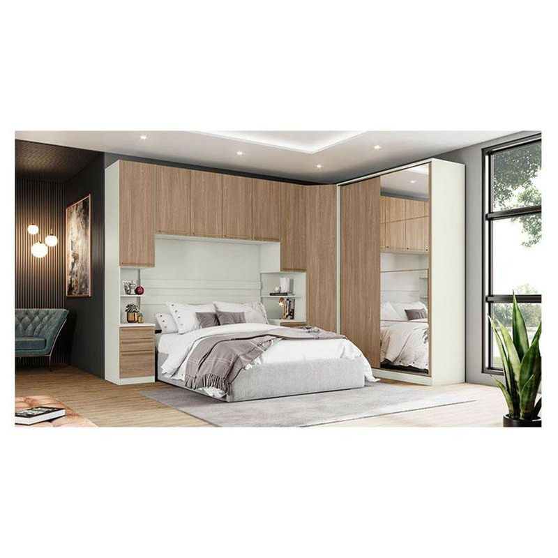 Quarto Modulado Casal Ambiente Composição 1 New Predileto 5 Peças Areia Jequitibá - Henn