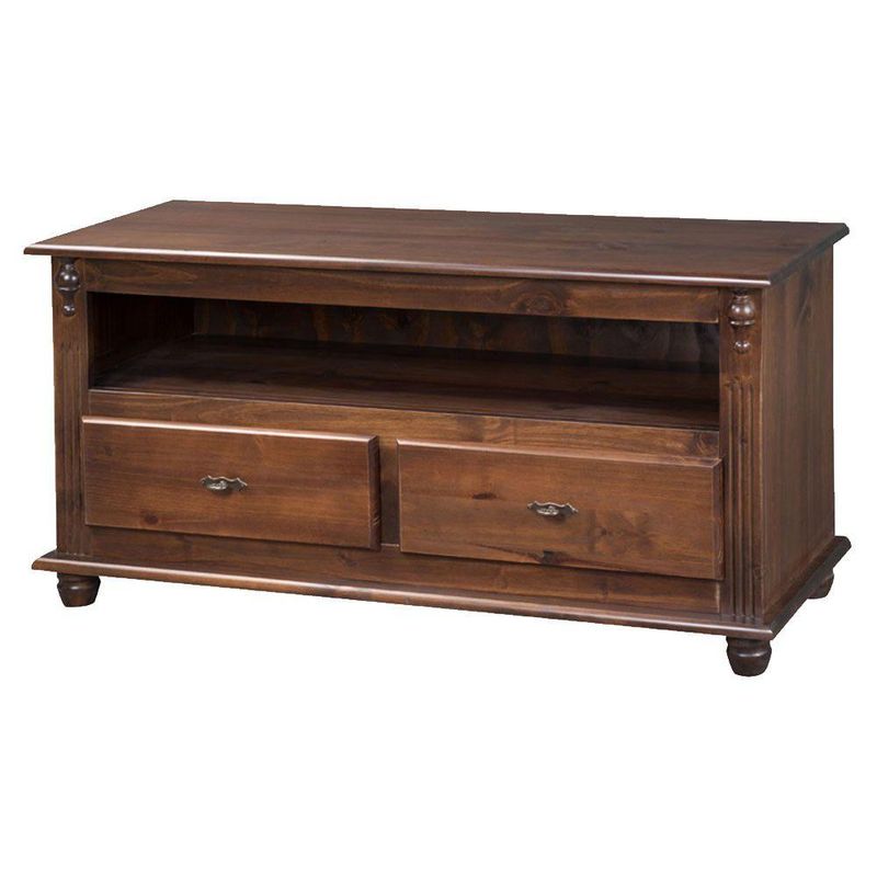 Rack Com 2 Gavetas, Nicho E Tampo De Madeira 502 Cor Pinhão Verniz