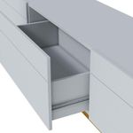 Rack Bancada Classic 3 Gavetas 1.8 Branco Acetinado - ImcalO rack da linha Classic 1.8 é uma peça elegante e funcional, projetada para trazer estilo e organização ao ambiente. Possui três gavetas espaçosas, proporcionando amplo espaço para você guardar seus acessórios. As gavetas são equipadas com corrediças telescópicas, garantindo um deslizamento suave e silencioso. Fabricado pela Imcal, é desenvolvido em MDP/ MDF com materiais de alta qualidade, apresentando uma estrutura robusta e durável. Seus pés são produzidos em madeira maciça, dando mais estabilidade. Com design sofisticado é uma escolha elegante para quem busca um móvel de qualidade, ideal para complementar sua sala de estar. Confira e garanta o seu!Características técnicas:- Produzido em MDP/ MDF