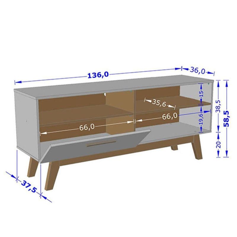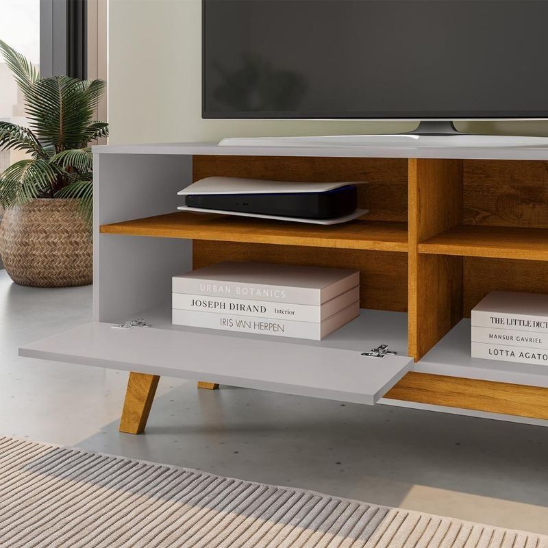 Rack Bancada Paladio Tv 55 Pol. Sala Com Pes De Madeira Off White/naturale
