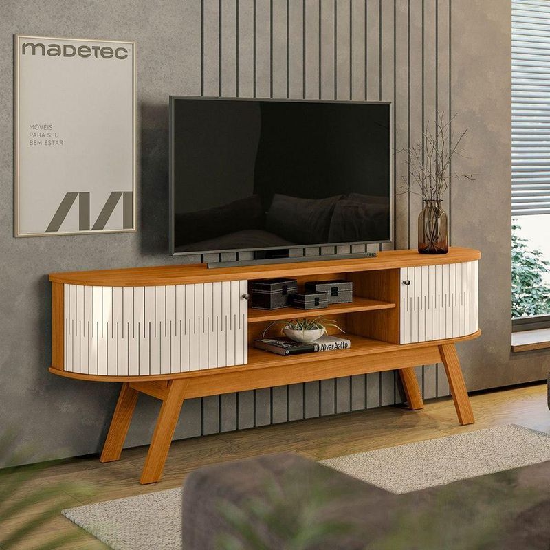 Rack Bancada Venezza 2 Portas Para Tv De 75 Polegadas Cinamomo/off White