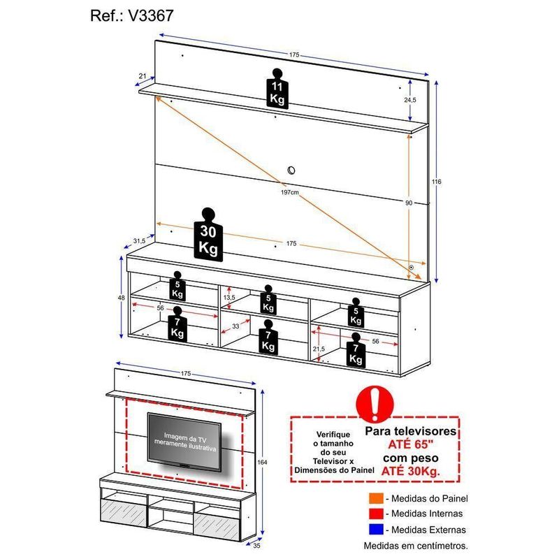 *Devido as variações de tamanho dos televisores no mercado, sugerimos que verifique as medidas da sua e compare com o painel antes de efetuar a compra.