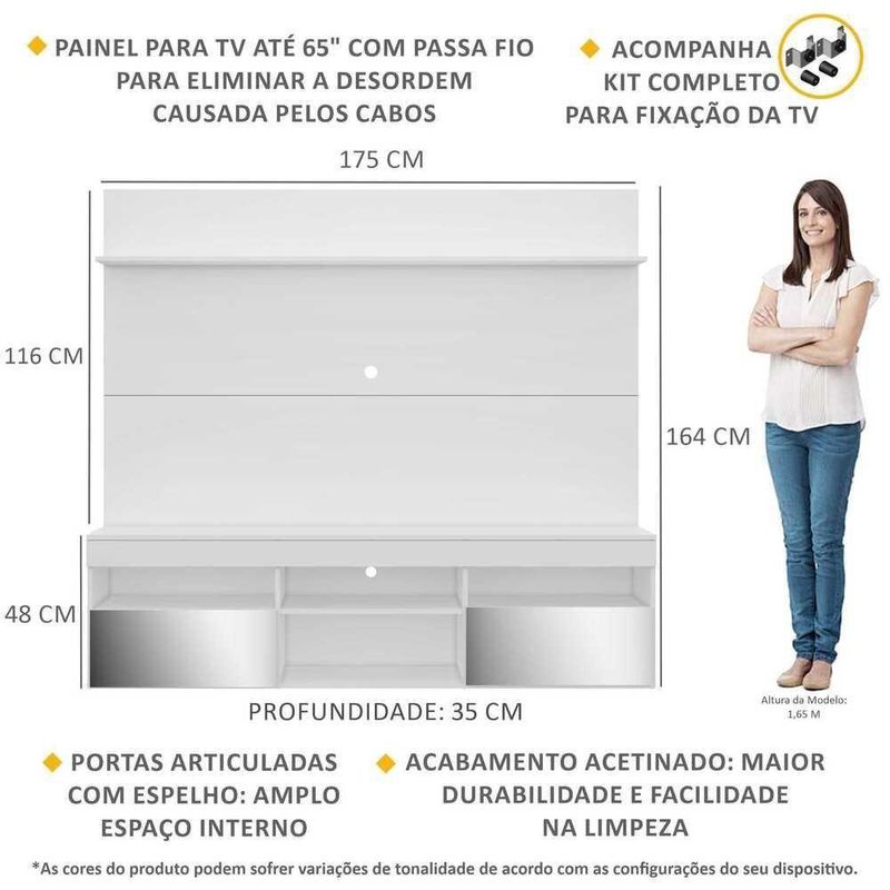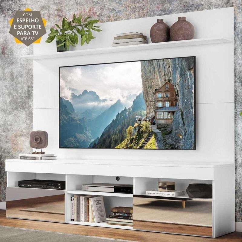 O Rack com Espelho e Painel 65" com Suporte e Prateleira Madri Multimóveis é produzido em MDP com acabamento acetinado, que garante maior durabilidade e facilidade na limpeza, possui 4 nichos com espaço para os equipamentos eletrônicos, além de 2 portas articuladas com espelho e um amplo espaço interno para manter seus pertences organizados. Os espelhos de vidro (evita que a imagem fique distorcida) e lapidados, ou seja, passam por um processo para que as bordas não fiquem cortantes, o que garante maior segurança, deixam o móvel mais requintado. O painel para de até 65” (suporta até 30 Kg) com espaçamento para passagem dos fios, que permite deixar os cabos mais organizados e o visual clean, ainda possui uma prateleira para os objetos decorativos. Para facilitar a sua vida, este produto acompanha também o kit para fixação da . Muito prático e de fácil instalação, pode ser utilizado para ’s LCD, LED e plasma de 14” a 71”. Totalmente sobreposto, acompanha gabarito de montagem que auxilia na instalação. Conta com um sistema de encaixe rápido, possui 16mm de deslocamento que permite o ajuste do encaixe das peças. Seu ambiente bonito e confortável para curtir os melhores filmes e séries.