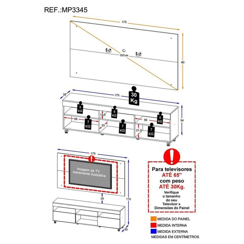 Painel Altura: 90cm | Largura: 175cm | Profundidade: 2,5cm