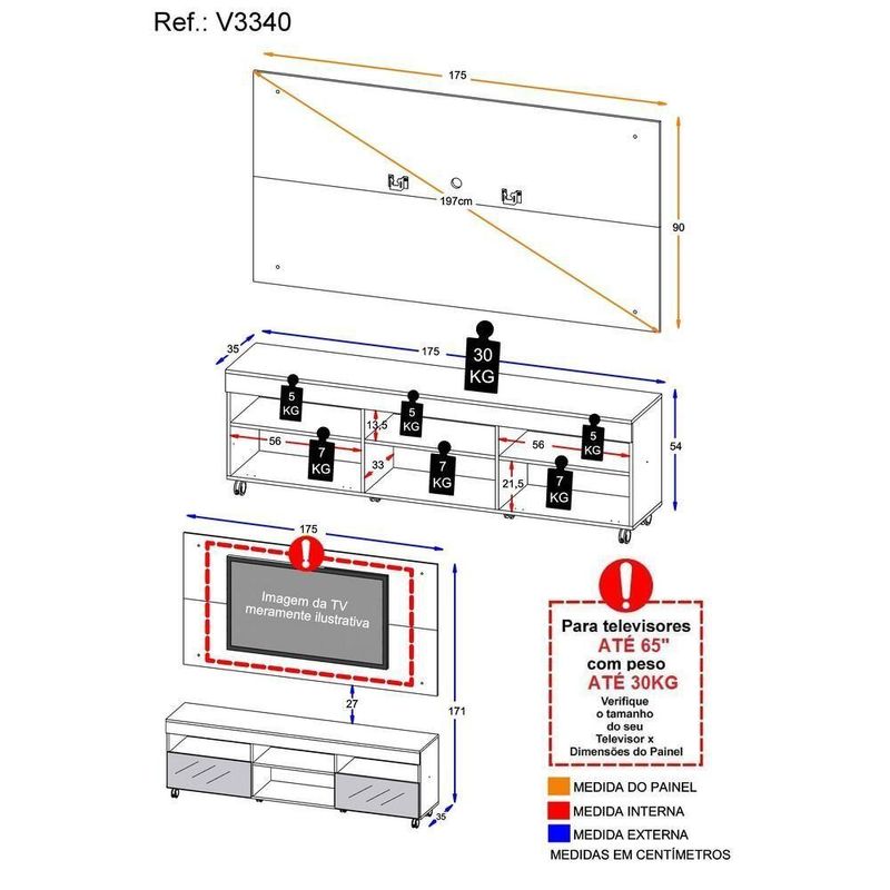 *Devido as variações de tamanho dos televisores no mercado, sugerimos que verifique as medidas da sua e compare com o painel antes de efetuar a compra.