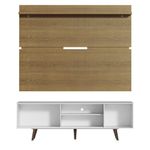 O acabamento do rack combina os tons branco e amadeirado Rustic. O painel possui pintura em amadeirado Rustic. O do painel é todo em amadeirado Rustic. O processo é feito em Poliéster Protetor ecológico com 7 camadas, detalhe que confere maior durabilidade e qualidade.Dimensões: Altura: 191 Cm