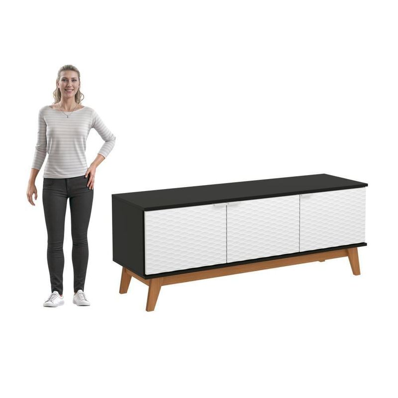 Rack Kappesberg 3 Portas 3d Preto Fosco/branco 136cm