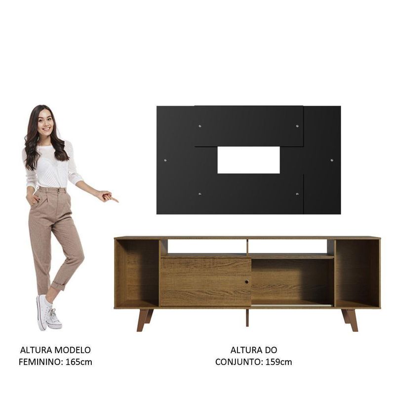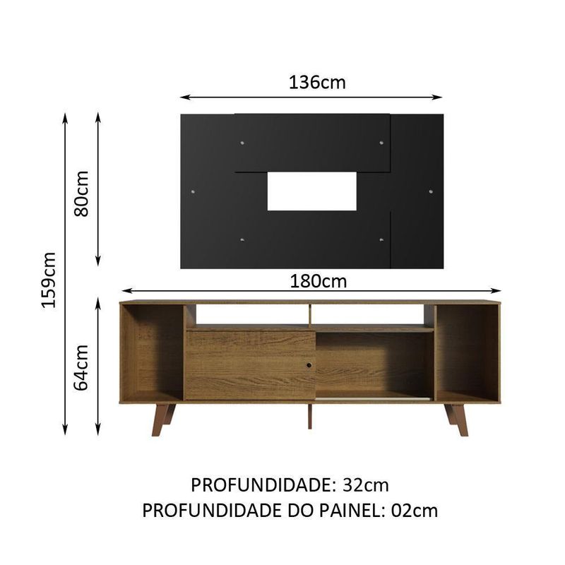- Um (1) Painel de 80 cm de altura x 136 cm de larguraRenove sua sala com o que há de mais moderno em design. Conheça o conjunto do rack cancun com pés e painel 2185 da madesa.O rack possui um tamanho ótimo, com uma porta de correr que permite fechar o lado esquerdo ou direito da abertura central. Além disso, são vários nichos de tamanhos variados. Assim, cabe tudo de maneira organizada, dos aparelhos eletrônicos até objetos decorativos, livros e revistas. Para completar, os pés dão mais firmeza e aumentam a altura do móvel.O painel tem design que mistura padrões verticais e horizontais. Comporta TV de até 58 polegadas e possui uma abertura central que facilita na passagem dos fios. Por ser separado do rack, pode ser fixado na altura desejada, conforme sua preferência ou necessidade.O acabamento do rack é no padrão amadeirado rustic e o do painel é preto. o processo é feito em poliéster protetor com 7 camadas, detalhe que confere mais durabilidade e qualidade aos produtos. Além disso, é ecológico, isento de vapores prejudiciais à atmosfera.Imagens meramente ilustrativas.Código do produto: MDES0200215ZD8Obs: A Madesa não disponibiliza serviço de montagem. O produto segue com manual de instalação e todas as ferragens necessárias para sua montagem.Marca: MADESA