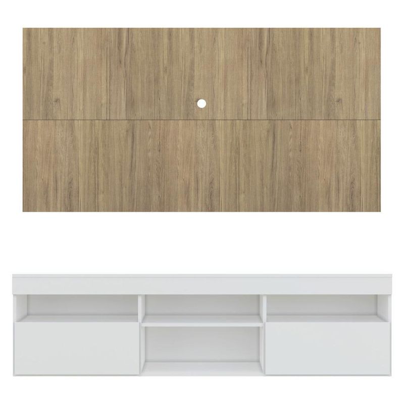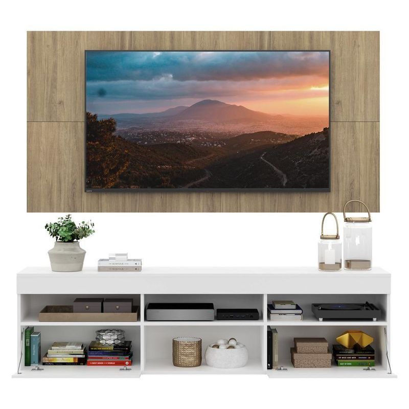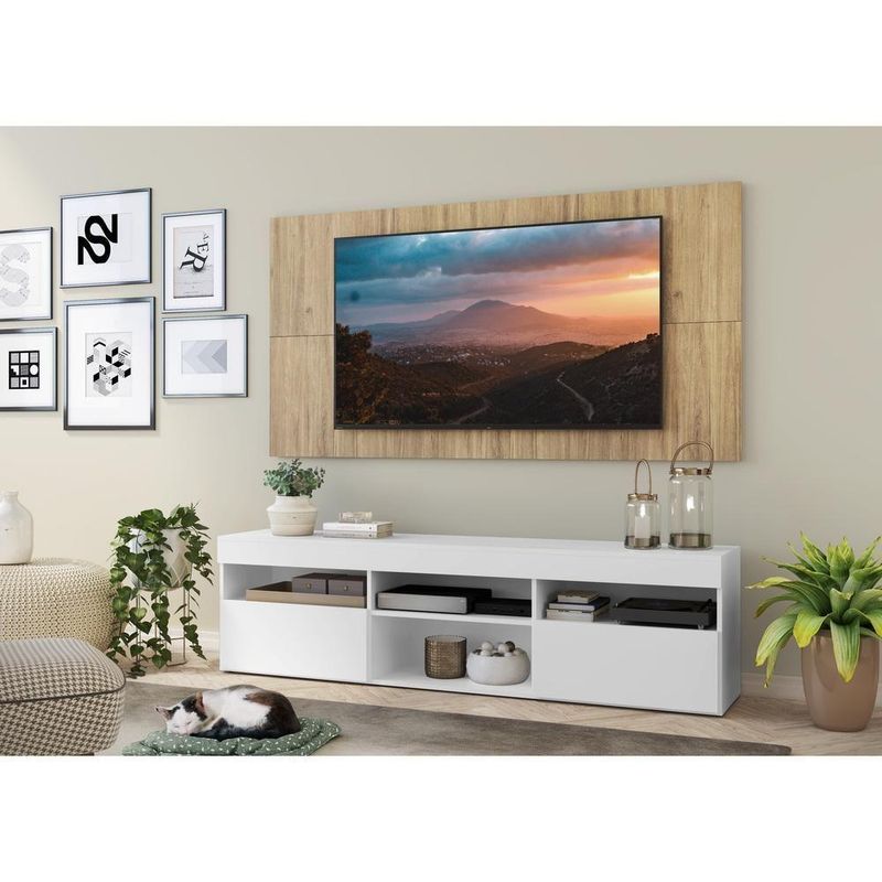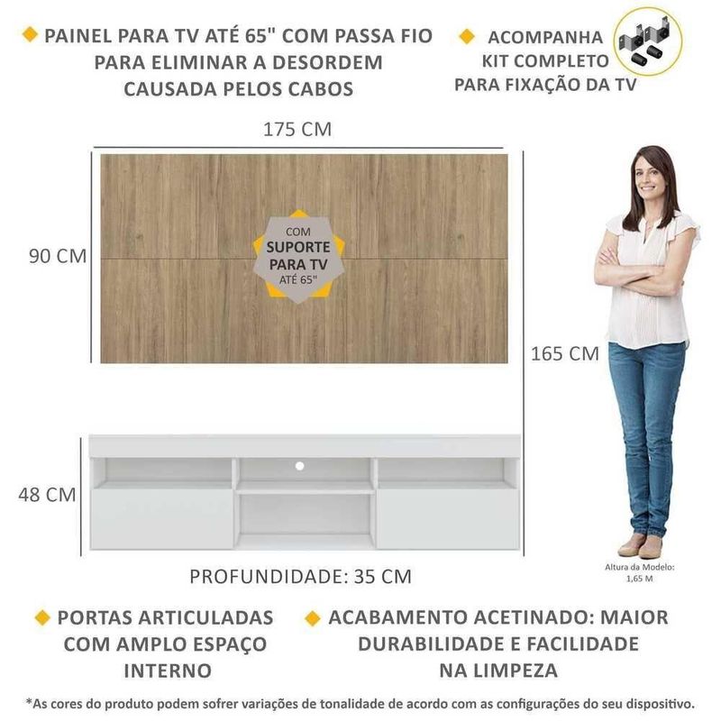 O Rack com Painel e Suporte para até 65 Polegadas com 2 portas Londres Multimóveis é produzido em MDP com acabamento acetinado, que garante maior durabilidade e facilidade na limpeza, possui 4 nichos com espaço para os equipamentos eletrônicos e objetos decorativos, além de 2 portas articuladas com um amplo espaço interno para manter seus pertences organizados. O painel para de até 65” possui espaçamento para passagem dos fios, que permite deixar os cabos mais organizados e o visual clean. Para facilitar a sua vida, este produto acompanha também o kit para fixação da . Muito prático e de fácil instalação, pode ser utilizado para ’s LCD, LED e plasma de 14” a 71”. Totalmente sobreposto, acompanha gabarito de montagem que auxilia na instalação. Conta com um sistema de encaixe rápido, possui 16mm de deslocamento que permite o ajuste do encaixe das peças. Uma ótima opção para deixar sua sala linda e confortável para curtir os melhores filmes e séries.