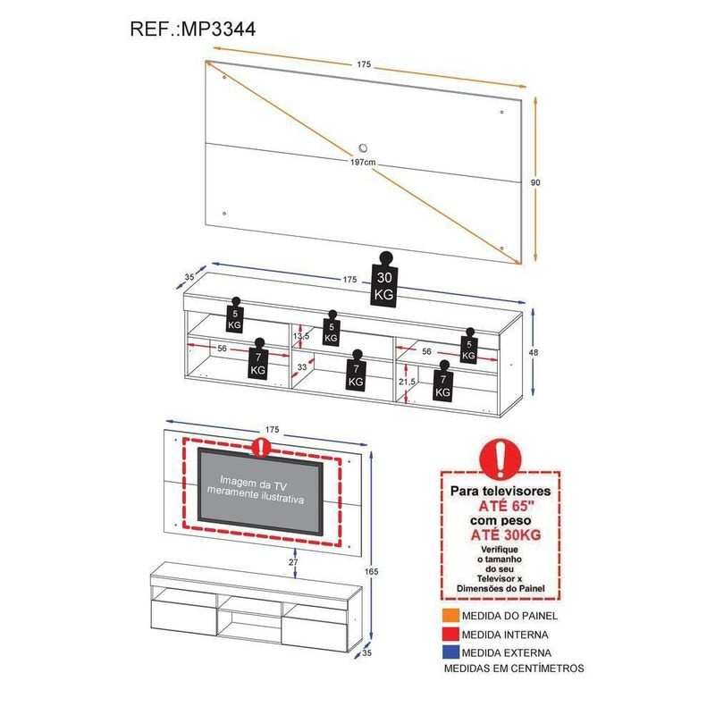 Painel Altura: 90cm | Largura: 175cm | Profundidade: 2,5cm