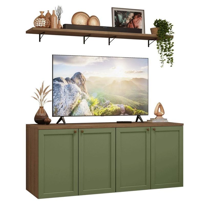 Rack Para Até 70 Polegadas + Prateleiras 160cm Rustic/verde Vik Madesa 05 Rustic/verde