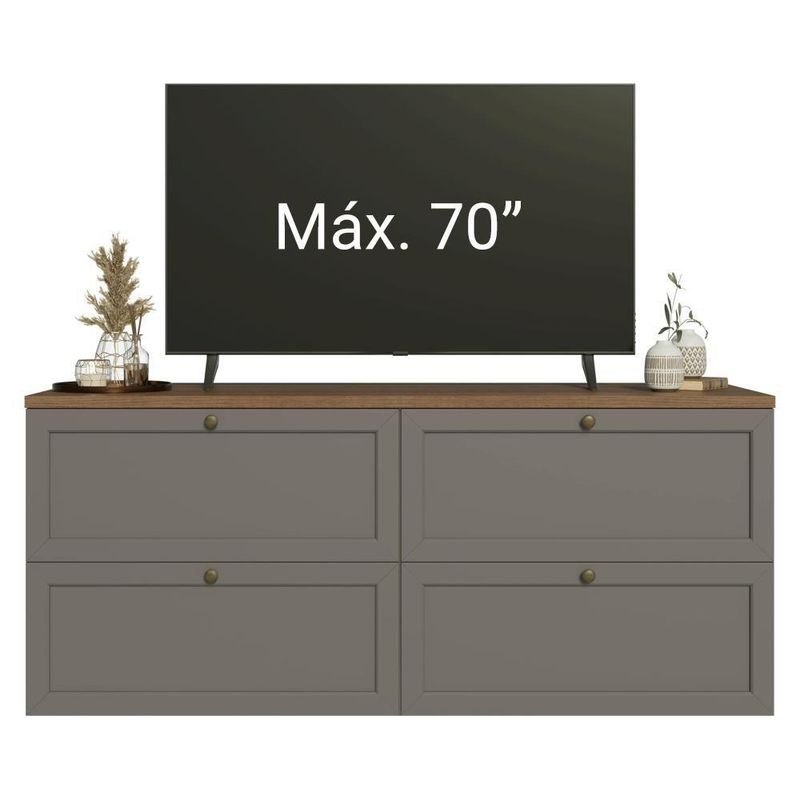 Composto por quatro gavetas amplas, o módulo pode ser instalado de forma suspensa, trazendo leveza e um toque contemporâneo ao ambiente. Além disso, oferece espaço ideal para acomodar de até 70 polegadas. As gavetas possuem corrediças que permitem abertura total, para você organizar tudo que precisa com muito mais facilidade.