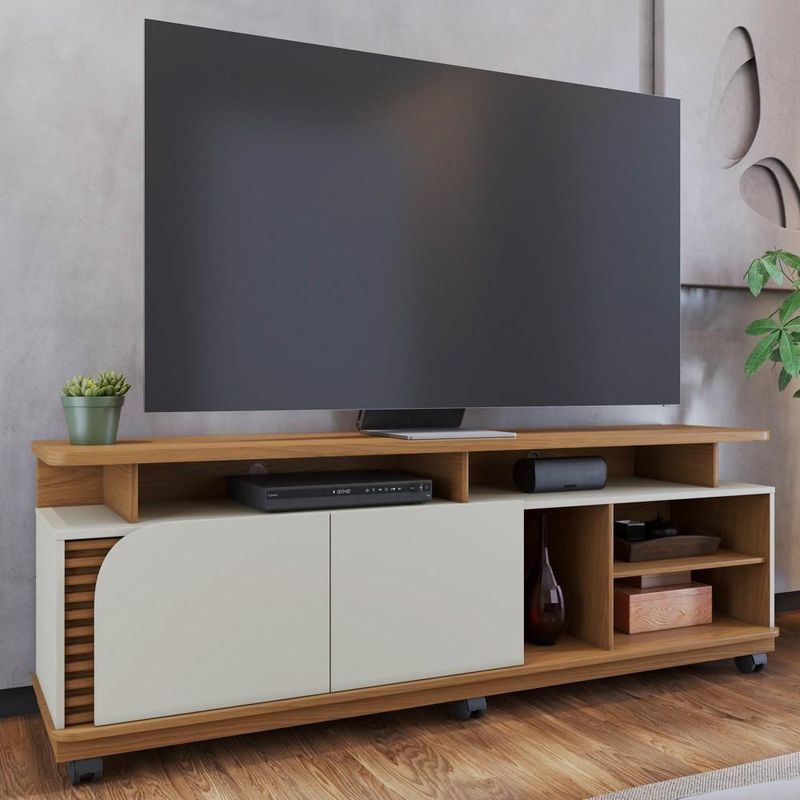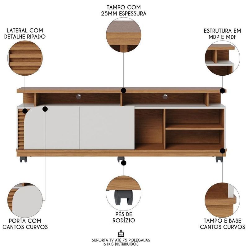 Rack Para Sala Bancada De 75 Pol 180cm Madrid C05 Freijó/off White Matte - Mpozenato