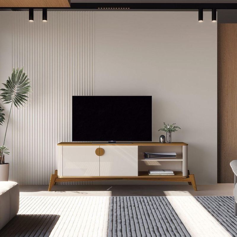 Rack Para Tv 1.4 Buriti Off White Com Nature - Moveis Jb