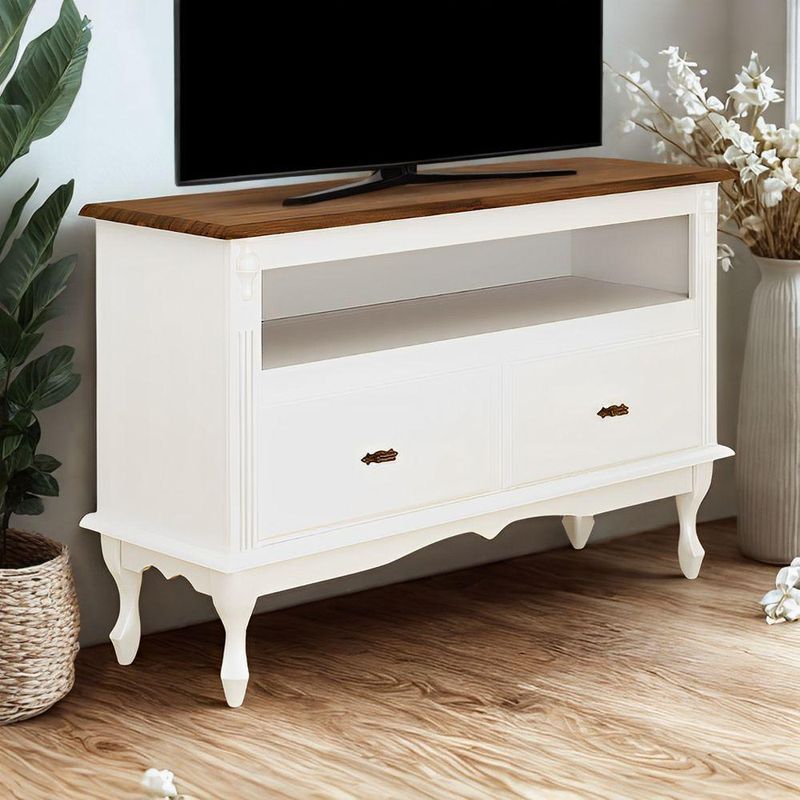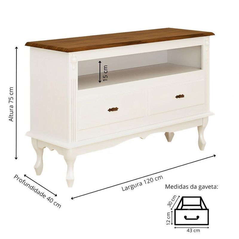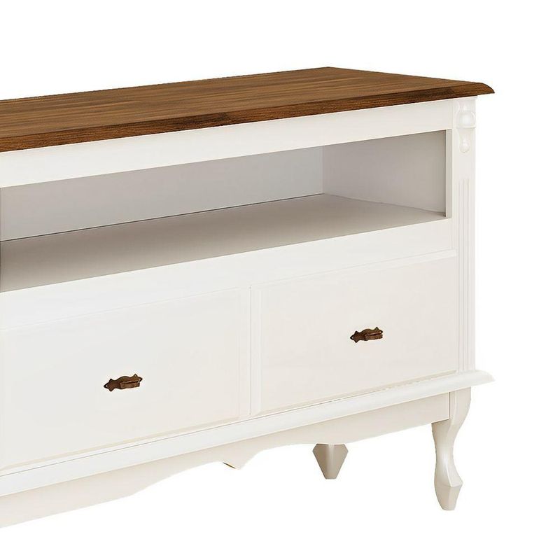 Rack Para Tv 45 Polegadas 2 Gavetas Nicho E Pés Luiz Xv - Branco Laca Com Tampo Imbuia Glazer