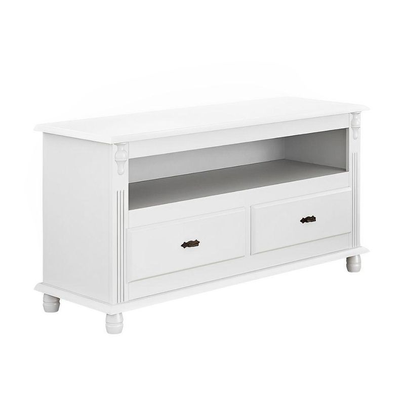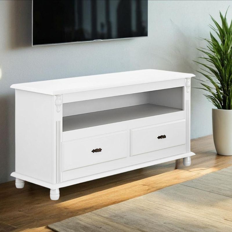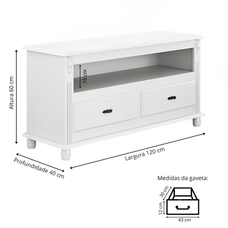 Rack Para Tv 45 Polegadas 2 Gavetas Nicho Pés Torneados - Branco Laca