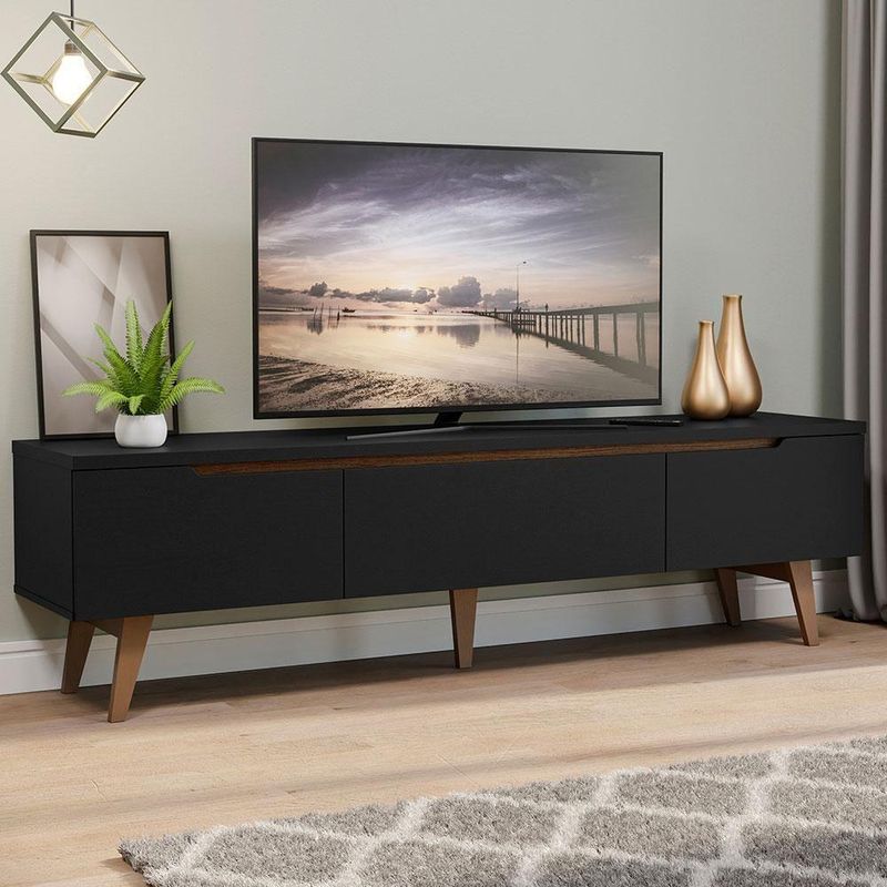 Rack Para TV Até 75 Polegadas Madesa Reims 2 Portas 1 Gaveta Preto Texturizado