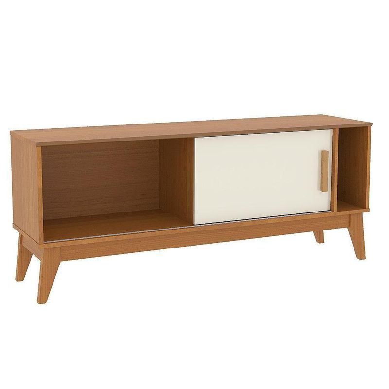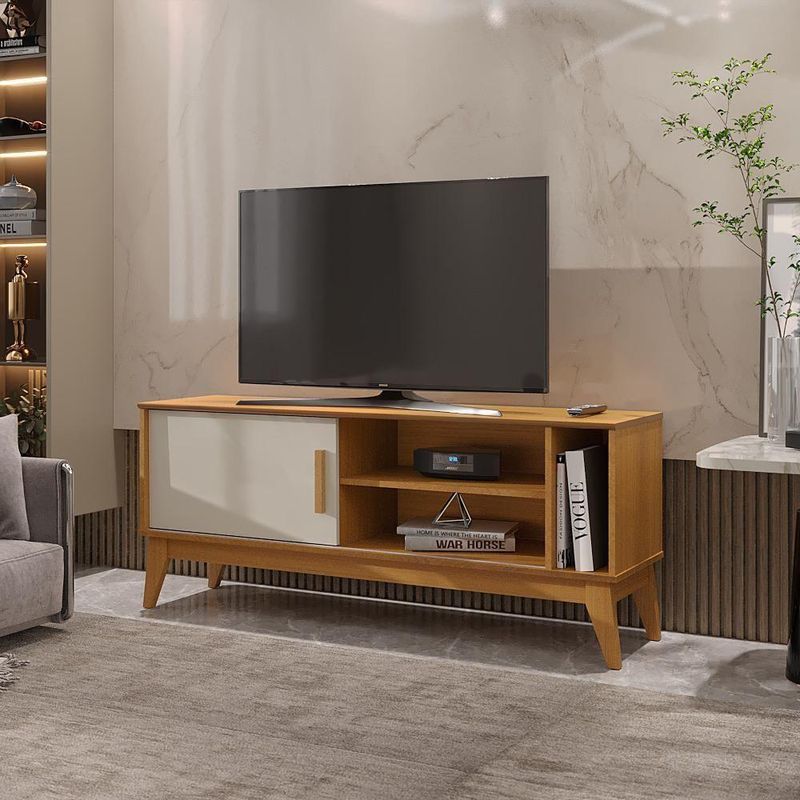 Rack Tv 55 Polegadas 1 Porta E Puxador De Madeira Arizona - Cedro E Off White