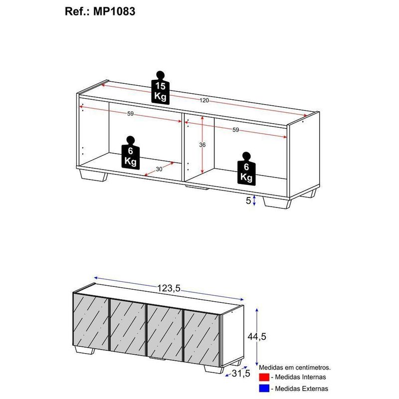 Altura: 44,5 cm | Largura: 123,5 cm | Profundidade: 31,5 cm
