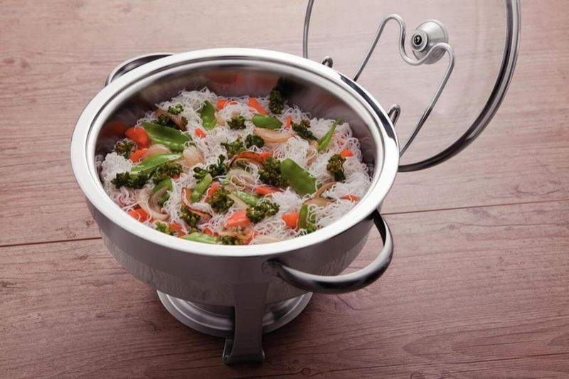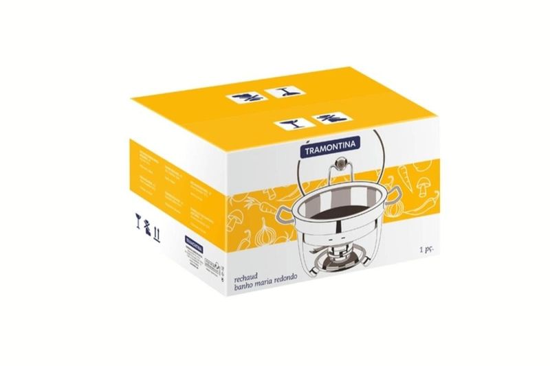 Para o seu evento ter uma apresentação sofisticada a escolha certa é o o Rechaud Tramontina Redondo em Aço Inox Banho Maria com Suporte para Tampa e Fogareiro 4,3 L. Ele irá proporcionar ao seu buffet um aspecto de requinte e beleza, deixando os seus convidados com água na boca ao servir suas receitas. O produto é altamente durável e higiênico, possui tampa de vidro, permitindo visualizar os alimentos.Recomendações de Uso:- Para eliminar o risco de asfixia em crianças pequenas, remova e descarte com segurança todas as embalagens plásticas do produto.