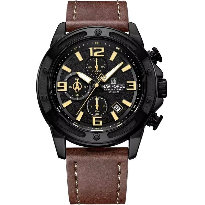 Relógio De Quartzo Masculino Multifuncional Com Cronógrafo à Prova D'água 3atm Marrom