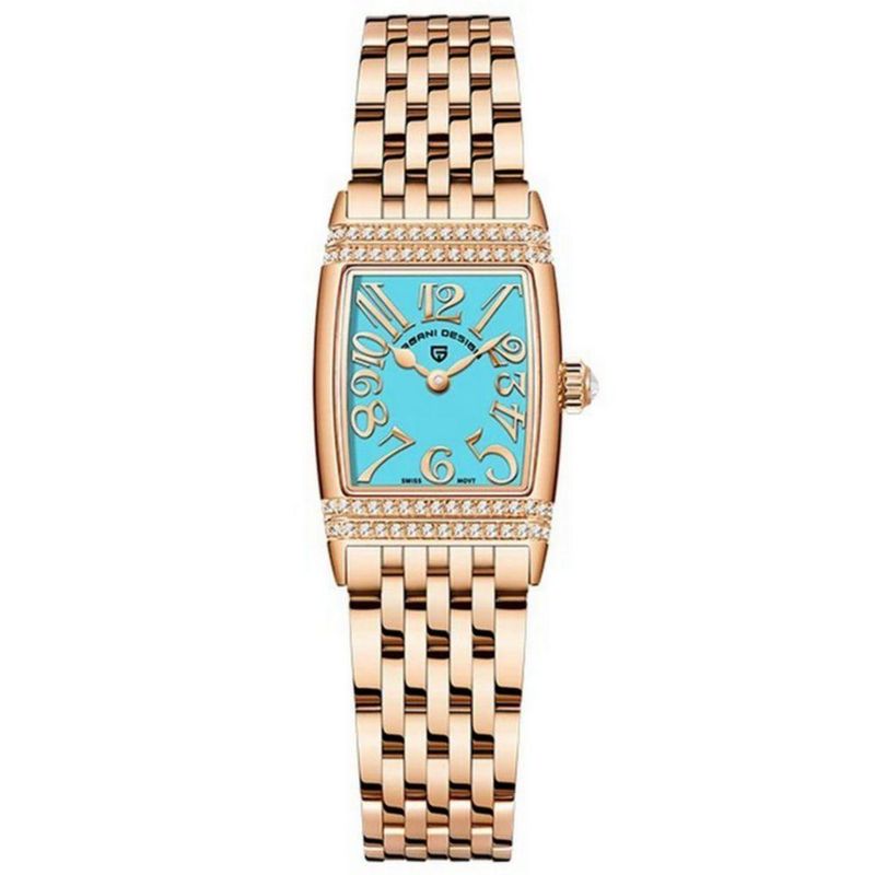 Relógio Feminino Quartzo Design Fino Elegante Com Strass Em Aço Inoxidavel Impermavel Azul Dourado