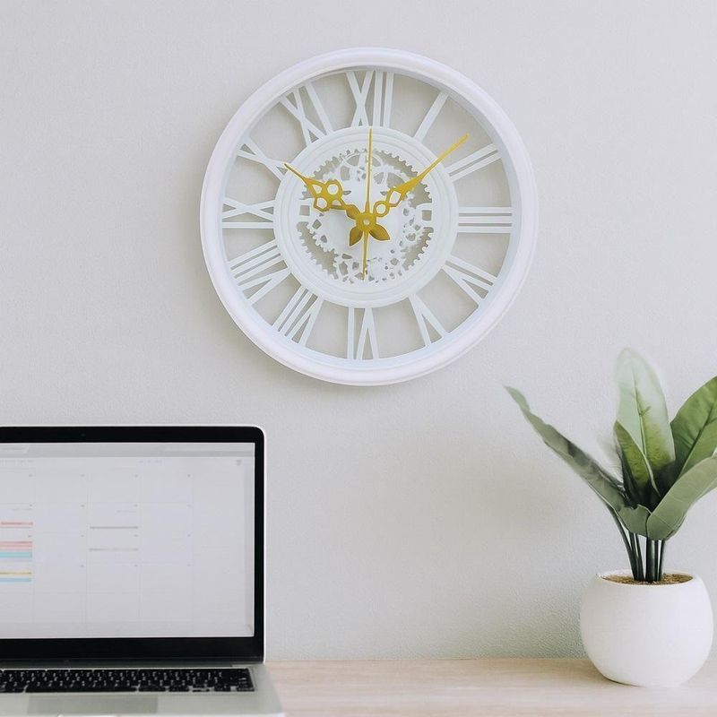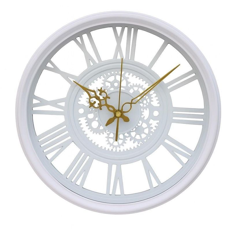 Relogio Parede Rustico Estilo Industrial Madeira Design Vintage Romanos 30cm Decorativo Branco