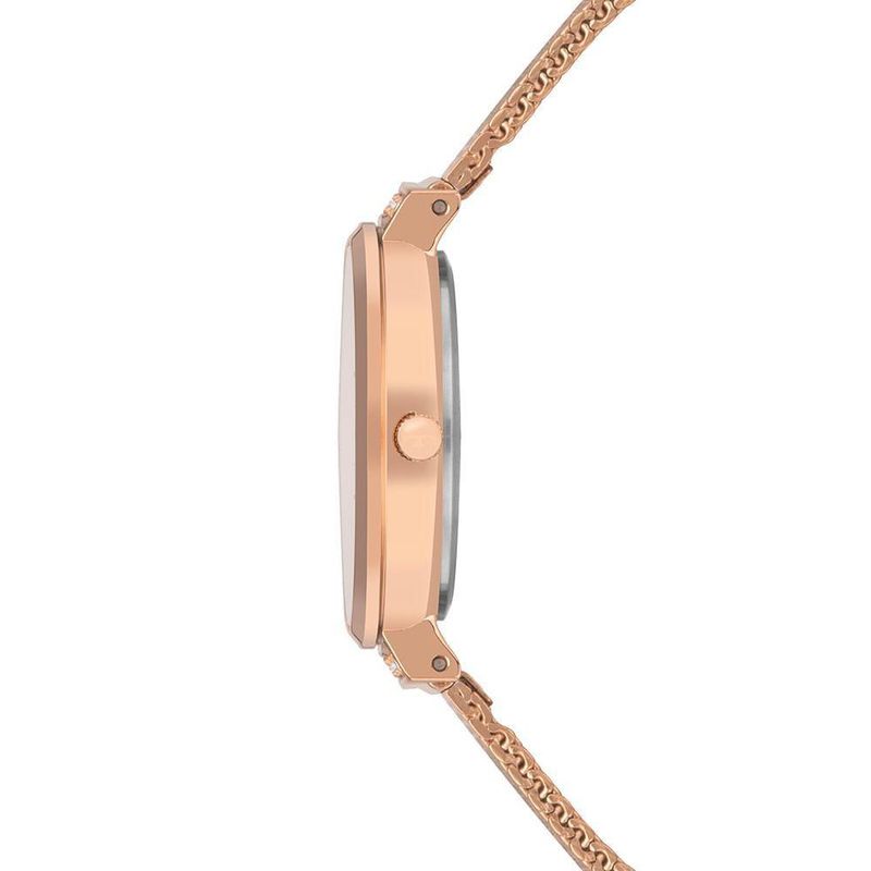 Relógio Slim apresenta o . Com a caixa ultrafina na cor rosé e design minimalista, a coleção apresenta lente de safira e aplicações de pedras nos terminais da pulseira e no mostrador com assinatura de linha, na cor marrom. Produto 100% em aço inoxidável, banhado em rosé, com máquina quartz Japonesa Miyota e resistência à água de 50 metros.