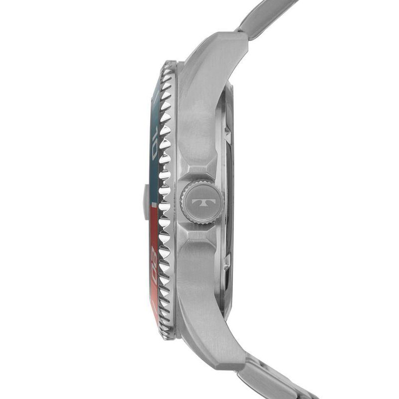 Relógio Acqua apresenta um novo design, com aro externo giratório unidirecional em cores e mostrador na cor azul com detalhes em relevo. Ele conta com marcadores de hora luminescentes, lupa de calendário e marcadores tridimensionais. Produto 100% em aço inoxidável, banhado em prata, com máquina quartz japonesa Miyota e resistência à água de até 150 metros.