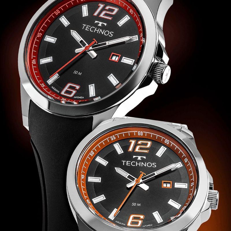 plaintext_description_meli - Relógio Technos Masculino Racer Basico Prata - 2115TWQ/1PA linha Racer apresenta seu modelo, com o diferencial do aro interno metalizado e colorido. Com sua estética esportiva, ele apresenta números grandes nas posições de 6/12 horas e segundeiro da mesma cor do aro interno. Produto 100% em aço inoxidável, com máquina quartz japonesa Miyota, calendário e resistência à água de 50 metros.