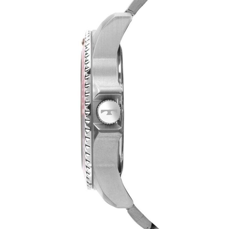 Relógio Technos Racer com design esportivo, inspirado no universo automobilístico. Ele apresenta um diferenciado aro de alumínio, bicolor preto/vermelho, com acabamento dentado e marcações em relevo. Produto em aço inoxidável, com máquina quartz japonesa Miyota multifunção e resistência à água de 50m. Tamanho de caixa 46mm.