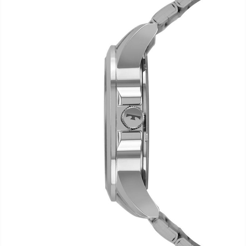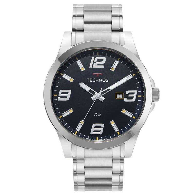 Relógio Technos Racer apresenta um modelo de design esportivo, que conta com mostrador de fácil leitura na cor preta, numeração arábica e calendário na posição de 3 horas, além de apresentar pulseira de aço em 3 links. Produto em aço inoxidável, banhado em prata, com máquina quartz japonesa Miyota e resistência à água de 50 metros.