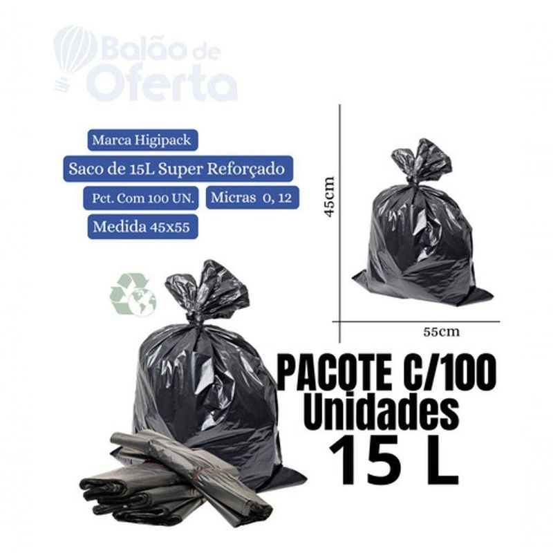 Saco De Lixo 15 Litros Super Reforçado Preto - 100 Unidades