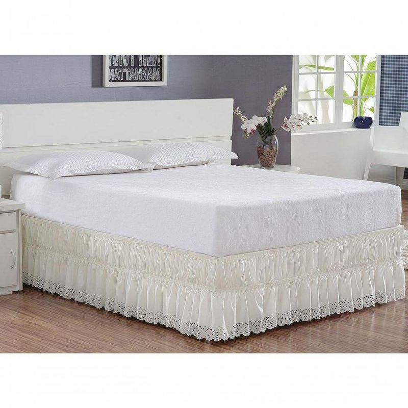 Saia Babado Cama Casal King Pérola Tecido Microfibra Acabamento Ultra Sônico - Palha