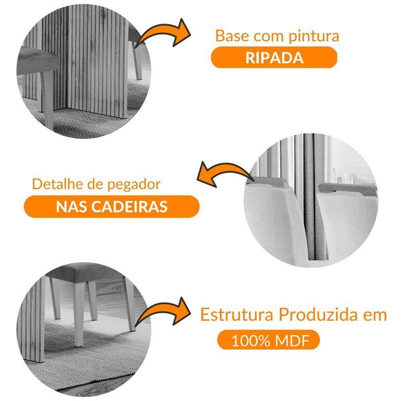 Para voce que ama recepcionar sua familia e amigos, A Sala de jantar Olimpia com cadeiras Athenas e perfeita. O conjunto tem sua estrutura em MDF e acabamento em pintura UV, que proporcionam melhor durabilidade. A mesa possui o tampo com espaco ideal para organizar os itens necessarios em suas refeicoes. As cadeiras tem um design moderno, com assento e encosto estofados trazendo conforto para seu lar. Alem de Possuirem puxador na parte superior do encosto para facilitar a movimentacao e evitar o toque ao tecido. Caracteristicas: Contem vidro Tampo canto curvo Estrutura em MDF Acabamento em Pintura UV Assento e Encosto Estofado Dimensoes Mesa: Altura: 80 cm Largura: 120 cm Profundidade: 80 cm Dimensoes Cadeira: Altura: 102,5 cm Largura: 42 cm Profundidade: 56 cm Garantia do Fornecedor 3 meses Informacoes importantes : As tonalidades das cores podem sofrer alteracao de acordo com a configuracao de cada monitor. Os objetos que ambientam as fotos nao acompanham o produto. Nao disponibilizamos a montagem do produto. O produto acompanha manual de montagem. Nao nos responsabilizamos por danos no produto causados por montagem de qualquer outra forma que nao seja a descrita no manual. Verifique as dimensoes do produto e certifique-se que o percurso que ele fara ate o local de uso permite sua passagem. Moderna Mobilia reserva o direito de alterar as especificacoes tecnicas sem previo aviso. As medidas contidas no site podem sofrer variacoes de acordo com a montagem, tipo de costura etc.