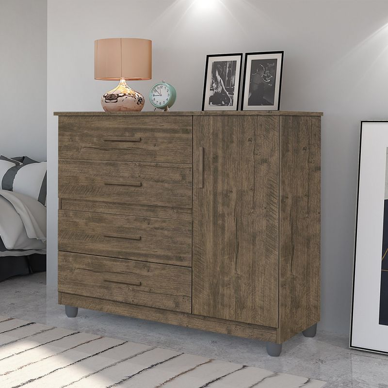 Cômoda Florence, elegante e funcional móvel de quatro gavetas e duas portas, projetado para oferecer soluções práticas de armazenamento e estilo para o seu ambiente, tornando seu dia a dia mais organizado. Com um design inovador, a cômoda combina perfeitamente com diversos estilos de decoração.