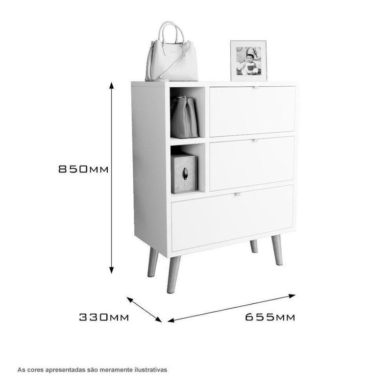 - Possui 03 gavetas