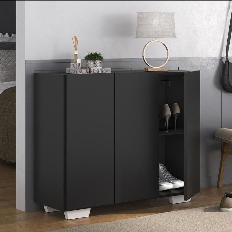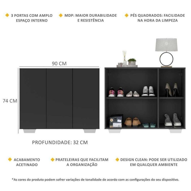 MóveisSapateirasSapateira 3 Portas Nina Multimóveis V6019 Preta/Branca
