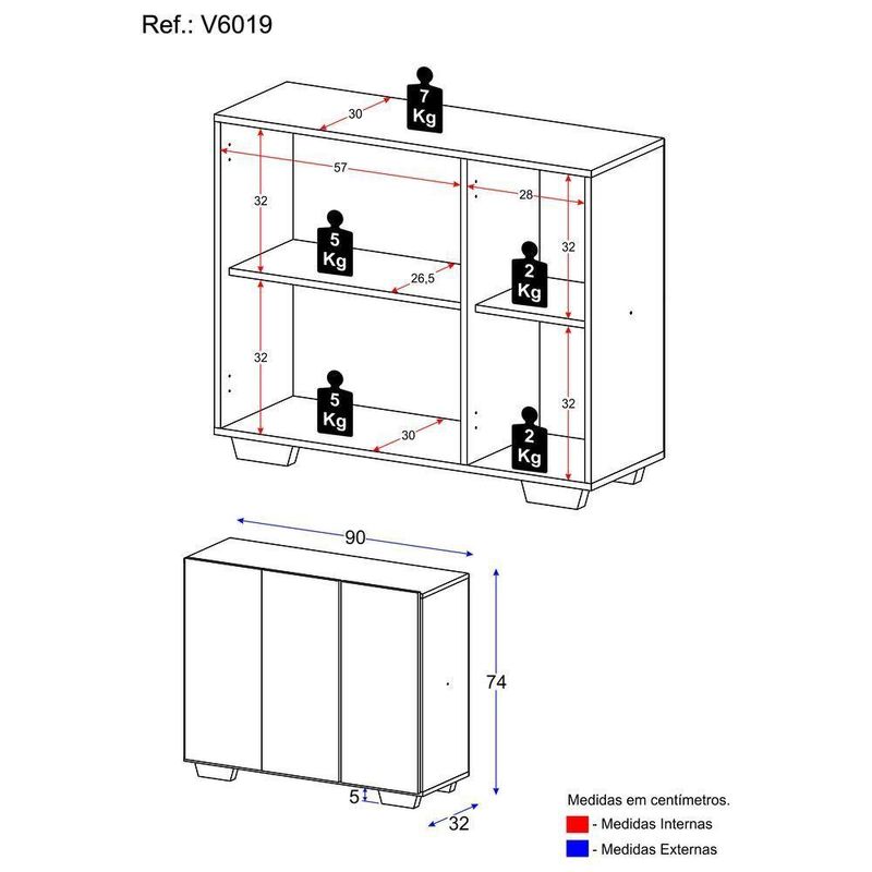 Altura: 74cm | Largura: 90cm | Profundidade: 32cm