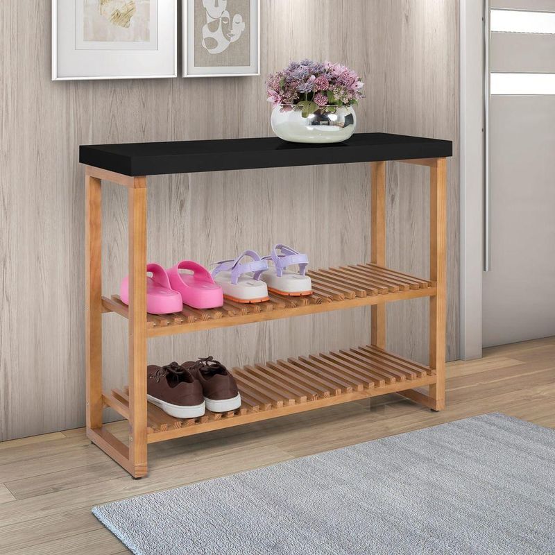 Sapateira Aparador Gold Com Prateleiras Ripadas Madeira Preto