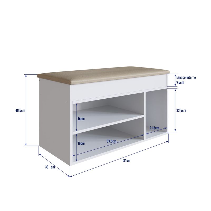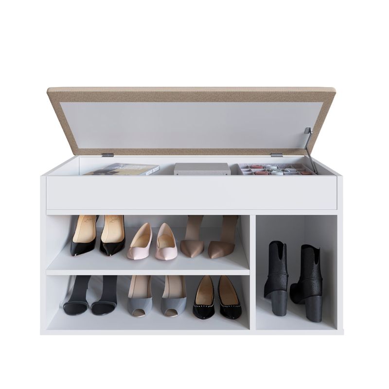 A Sapateira Baú Branco com Tampo Estofado da Completa Móveis é um produto versátil, ideal para organizar seu lar e valorizar a decoração da sua casa com grande estilo, pode ser utilizada em ambientes como: dormitório e hall de entrada. No dormitório, ideal para cama de solteiro, mas, podendo ser utilizada perfeitamente com cama de casal. Praticidade em guardar seus calçados e facilitando quando da colocação dos mesmos. Baú com tampo estofado o qual prático e confortável, bom para guardar não somente acessórios pros calçados, mas tmbém livros e outros pertences. Como hall de entrada, ideal para as mesmas praticidades e funções do seu quarto, além do charme e decoração!