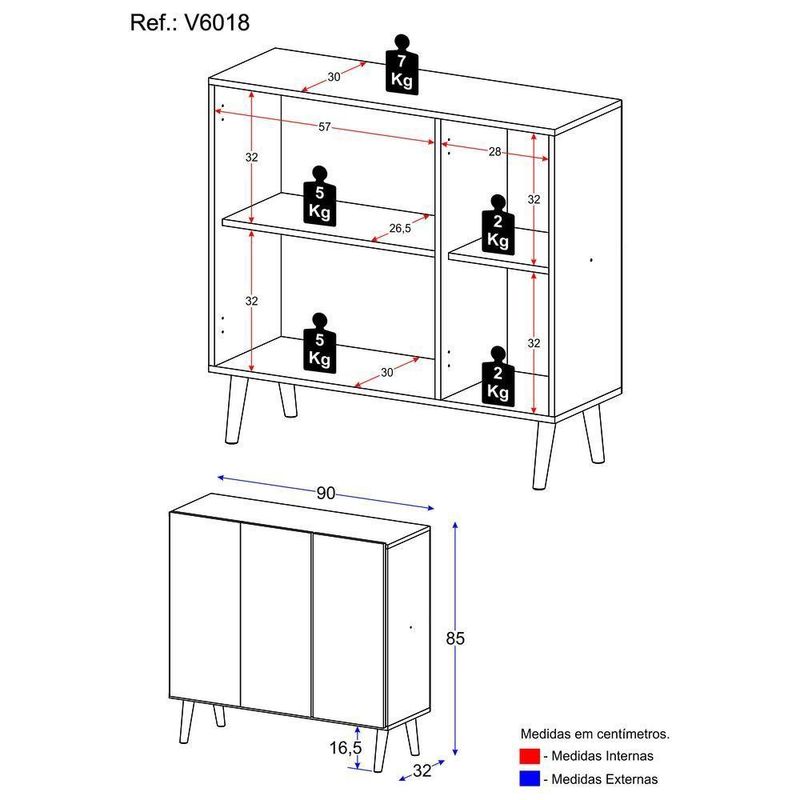 Altura: 85cm | Largura: 90cm | Profundidade: 32cm