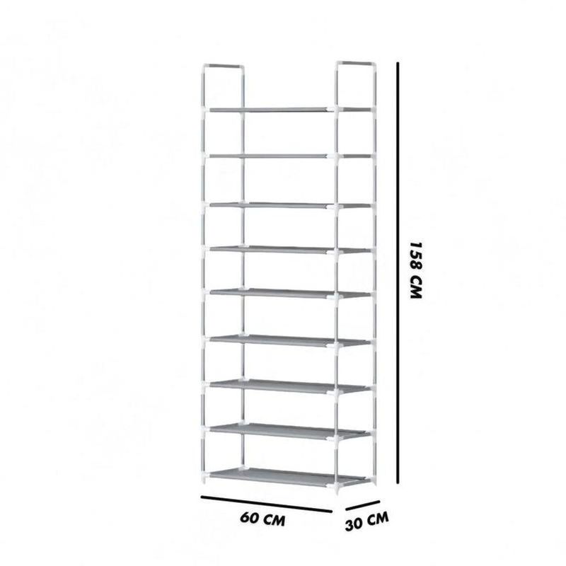 Sapateira Vertical 9 Prateleira Organizador Multiuso BrancoA Sapateira Vertical é a solução ideal para quem busca organização e praticidade no dia a dia.Com um design moderno e funcional, este organizador possui 9 prateleiras, permitindo o armazenamento de até 27 pares de sapatos.Ideal para otimizar espaços em closets, quartos ou até mesmo na entrada da casa.Contém: 01 SapateiraO produto é enviado desmontadoEspecificações:- Medida: 158cm x 60cm x 30cm- Prateleiras: 09- Capacidade: 27 pares de Sapatos- Fácil de Montar- Estrutura Compacta e Reforçada- Cor: BrancoDevido à diferença entre monitores e iluminação diferentes, pode haver variação na tonalidade apresentada no anúncio. Medidas muito aproximadas.Sapateira Vertical 9 Prateleira Organizador Multiuso BrancoA Sapateira Vertical é a solução ideal para quem busca organização e praticidade no dia a dia.Com um design moderno e funcional, este organizador possui 9 prateleiras, permitindo o armazenamento de até 27 pares de sapatos.Ideal para otimizar espaços em closets, quartos ou até mesmo na entrada da casa.