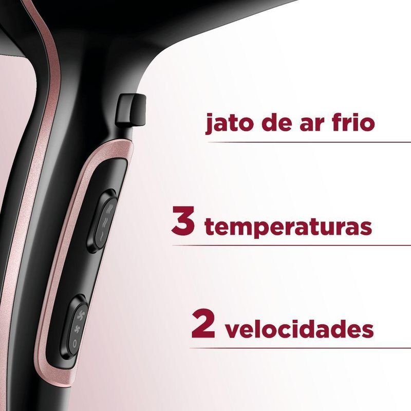 3 TEMPERATURAS + 2 VELOCIDADES : Escolha a combinação ideal para o seu tipo de cabelo.