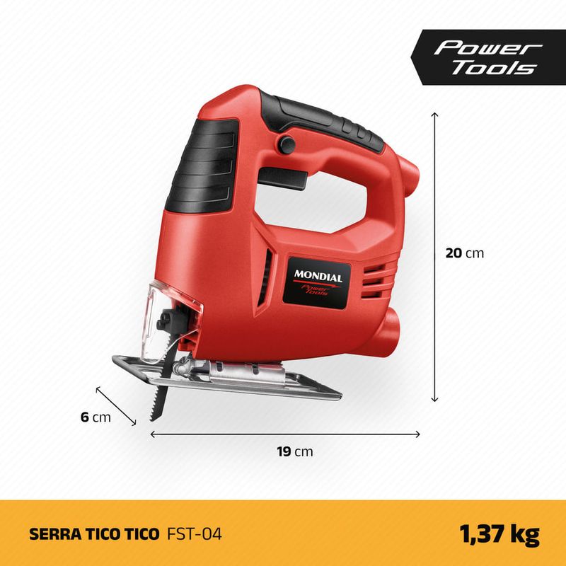 A Serra Tico-Tico FST-04 da Mondial é o item perfeito para quem deseja colocar a mão na massa e realizar seus projetos no melhor estilo “Faça Você Mesmo”. A ferramenta tem potência de 450W velocidade de 3.000 GPM e base ajustável em 0° 15° 30° e 45°. Além disso o protetor frontal da lâmina oferece mais segurança ao uso. Saiba mais sobre a FST-04: