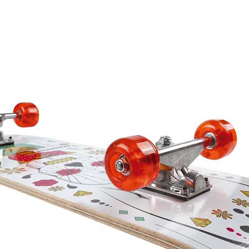 O Skate Iniciante da Mor é ideal para pessoas que estão começando a praticar o esporte e conta com quatro opções de estampas exclusivas para você escolher: flor, cogumelo, caveira e caveira floral. Com shape de 31?x8? com 9 camadas prensadas, o Skate conta com rodas de 50mm de diâmetro fabricadas em poliuretano (PU) que por serem mais macias, ajudam a amortecer as vibrações do asfalto. Seus amortecedores em PVC reduzem ainda mais o impacto e seu truck em alumínio, é durável e resistente. O peso máximo recomendado 100 Kg. Uma super opção de presente!
