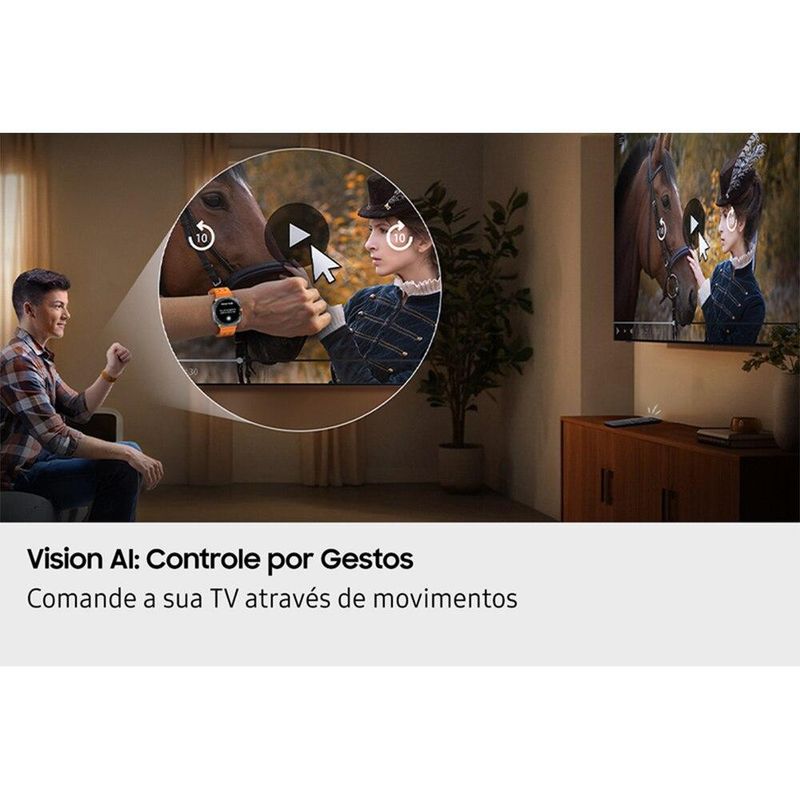 Funções Smart Sistema operacional: Tizen™ Smart TV ( 7 Anos de Atualização) Bixby: Sim Comando de Voz à distância: Sim Assistente de Voz Integrado: Alexa / Bixby Compatível com Assistente de Voz: Alexa (Vendido Separadamente) Samsung TV Plus: Sim App Xbox Cloud Gaming: Sim App NVidia GeForce Now: Sim Navegador (Web Browser): Sim Hub SmartThings / Hub Matter / Funcionalidade IoT-Sensor / App de Controle Remoto: Sim Experiência de Múltiplos Dispositivos: TV para Celular, Celular para TV, Espelhamento de TV, Espelhamento de Som, TV Sem Fio Ligada, Visualização por Toque Multitela: Até 2 Conteúdos ScreenVitals:Sim Apple AirPlay: Sim Loja de Arte: Sim Hub Daily+: Sim
