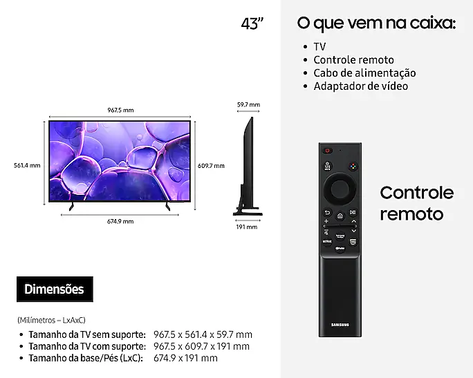 Smart TV Samsung 43" Crystal UHD 4K 2025 UN43U8100FGXZD