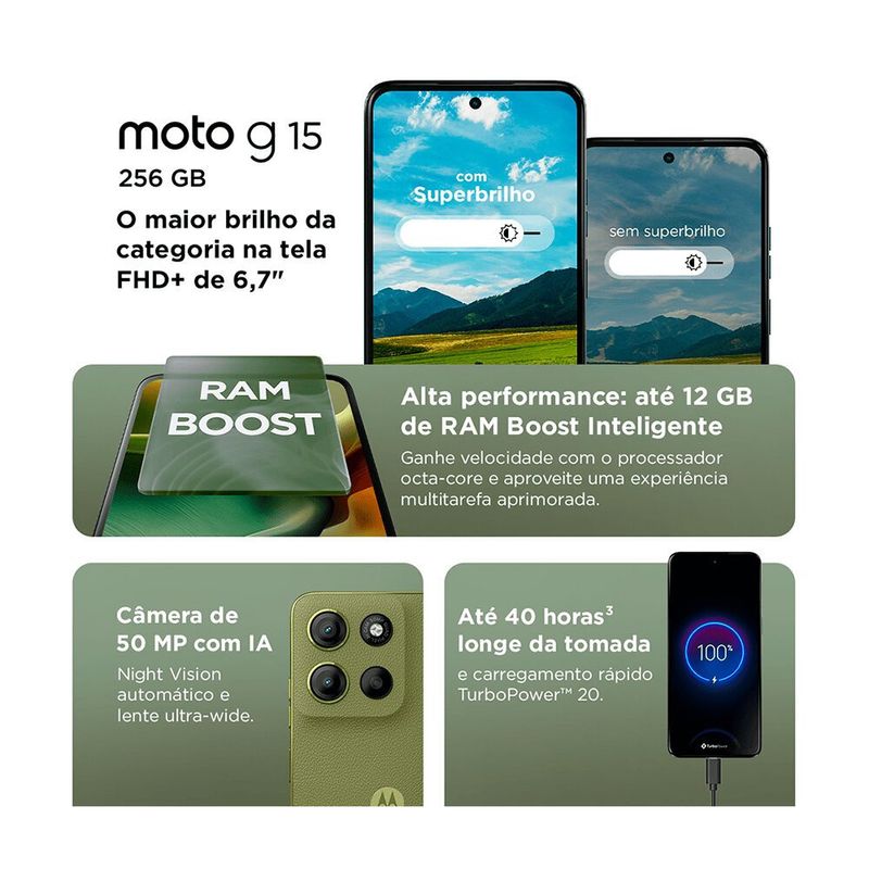 Se você ama estar conectado com o que mais gosta, você precisa conhecer o Smartphone Motorola Moto G15 50 MP + 5 MP 256 GB 4G XT2521-2. Ele é perfeito para navegar nas redes sociais e assistir filmes e séries com qualidade de som e imagem.